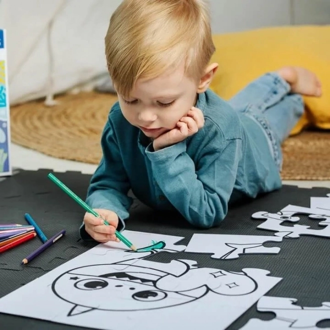 Kolorowanka na odwrocie puzzli wspiera kreatywność i zapewnia zabawną aktywność dla małych artystów.