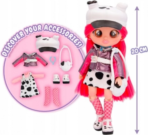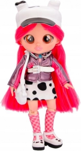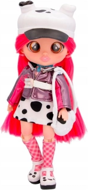 Dotty pojawia się w wyrazistym stylu w grochy: sukienka w kropki, metaliczna kurtka z eko‑skóry, buty Mary Jane na platformie, kraciaste skarpetki i urocza czapka z uszkami. Dzięki ruchomemu ciału łatwo przyjmuje różne pozy – idealne na pokazy mody i kreatywną zabawę.