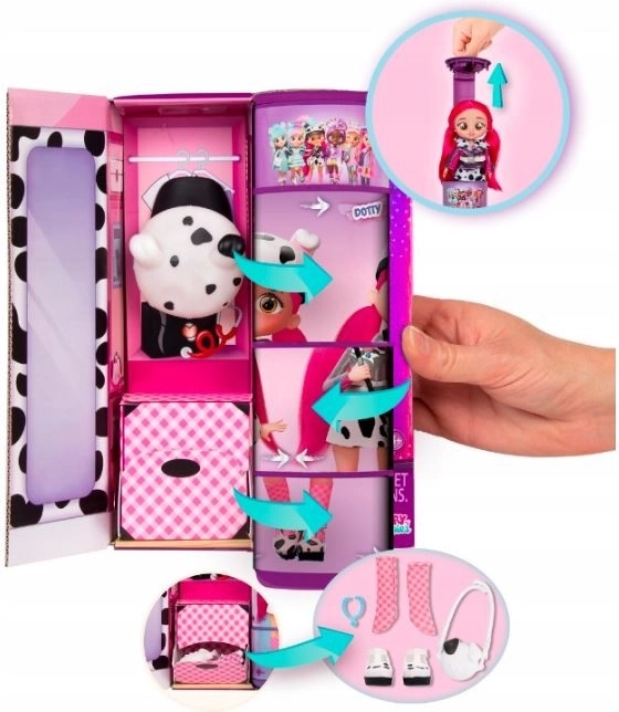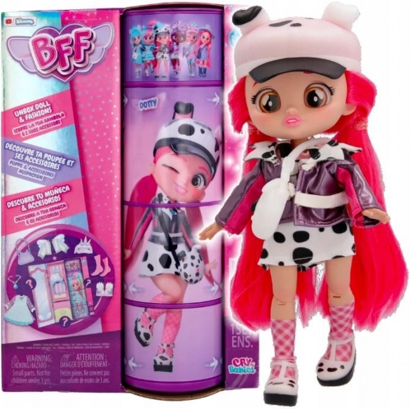 Poznaj swoją nową najlepszą przyjaciółkę – lalkę CRY BABIES BFF Dotty o wysokości 15 cm z jedwabistymi nylonowymi włosami, kryształkowymi oczami i w pełni ruchomym ciałem. W opakowaniu czeka ponad 9 niespodzianek, stylowe ubranka i akcesoria. Pudełko pełni funkcję szafy, więc zabawa zaczyna się od razu po rozpakowaniu!