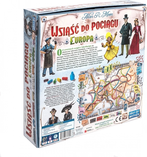 Zasady Wsiadaj do pociągu: Europa to prosta i elegancka gra, której można się nauczyć w 5 minut. Daje frajdę całej rodzinie, a także spodoba się doświadczonym graczom. Ten zestaw zawiera kompletną grę i nie wymaga pierwszej wersji Ticket to Ride.