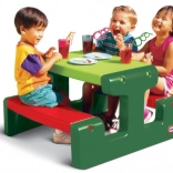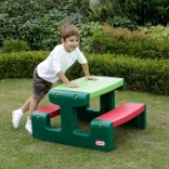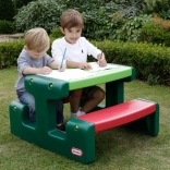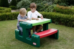 Szukasz uniwersalnego dziecięcego stolika na ogród i do domu? Ten jednoczęściowy stolik piknikowy LITTLE TIKES jest idealny do tworzenia, malowania, lepienia i przekąsek. Solidna, plastikowa konstrukcja znosi codzienne użytkowanie, a pielęgnacja zajmuje chwilę – wystarczy przetrzeć wilgotną ściereczką.