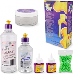 Zestaw pozwala dzieciom stać się małymi chemikami i obserwować, jak ciekłe składniki podczas mieszania zmieniają się w zupełnie inną formę. Gotowego glutka można ugniatać, rozciągać i dzielić, dzięki czemu rozwija się zręczność manualna i mała motoryka.