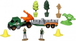 - 1 pojazd, 1 przyczepę i 3 tematyczne akcesoria, które zwiększają realistyczność scenariuszy zabawy.