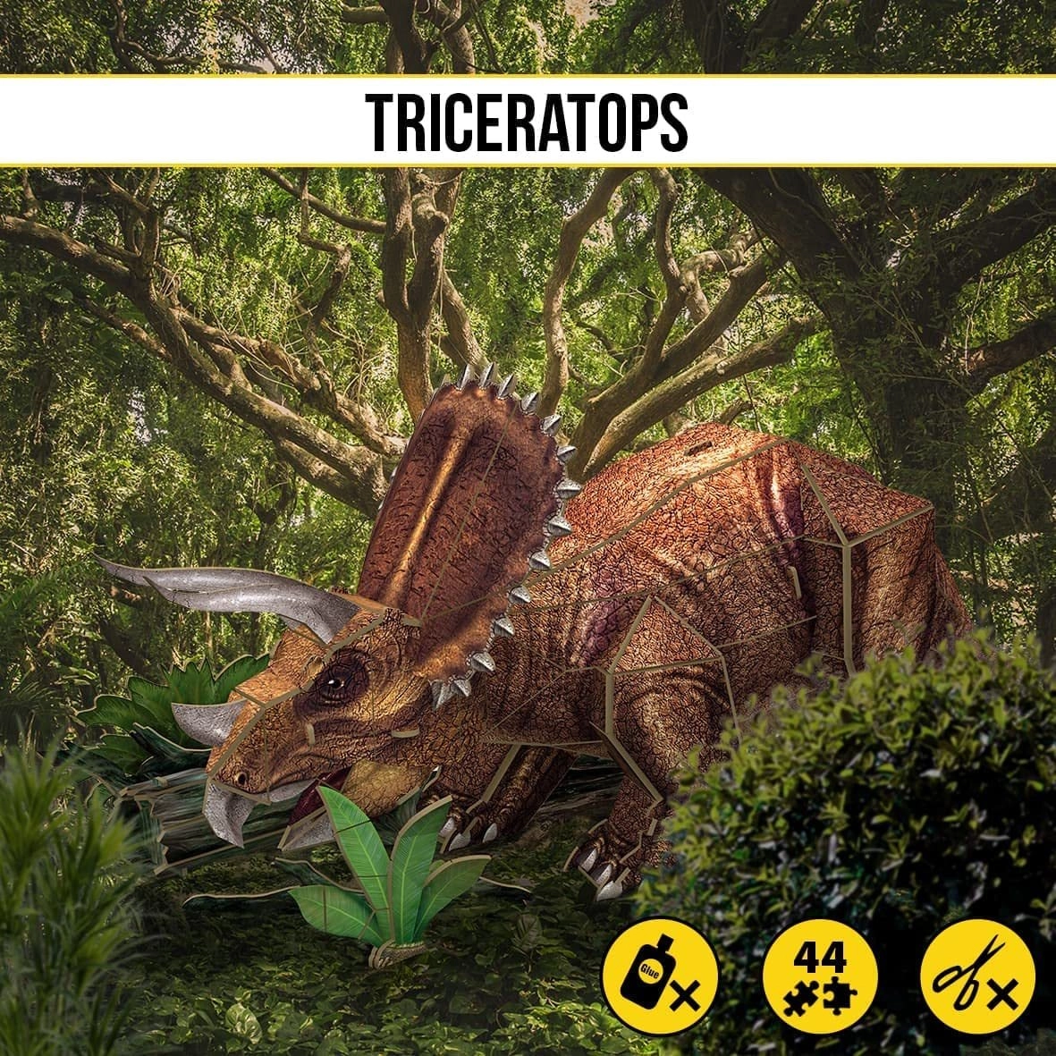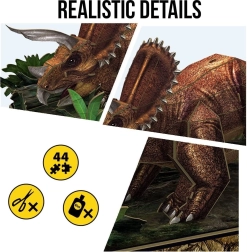 Zbuduj kultowego dinozaura i poczuj radość tworzenia. Dzięki wstępnie wyciętym elementom i przejrzystej instrukcji składanie jest intuicyjne i przyjemne dla dzieci i dorosłych. Gotowy model Triceratopsa ma wymiary 39 × 16,5 × 18 cm i stanie się świetną ozdobą pokoju lub projektu szkolnego.