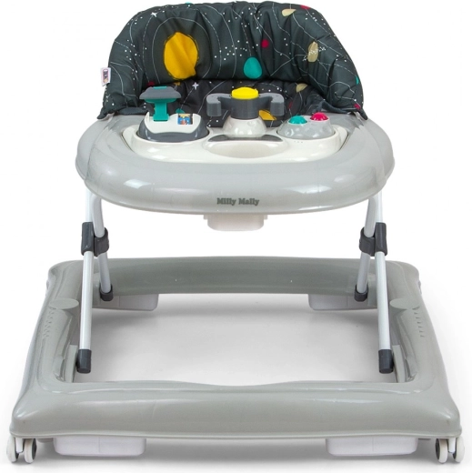 Patrol Cosmos marki Milly Mally to chodzik zaprojektowany dla aktywnych i ciekawych świata dzieci uczących się chodzić. Dzięki regulowanemu na wysokość siedzisku nóżki dziecka łatwo dosięgają podłogi, co wspiera naturalny ruch. Wygodne siedzisko z oparciem gwarantuje maksymalny komfort podczas zabawy. Materiały są łatwe w czyszczeniu, co ułatwia pielęgnację.