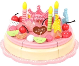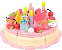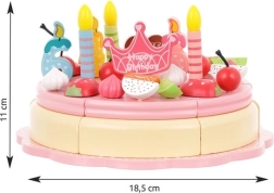 Drewniany tort umożliwia dekorowanie według własnych pomysłów z użyciem elementów dekoracyjnych. Ćwiczy motorykę precyzyjną i rozwija kreatywność. Wszystkie części są bezpiecznie połączone magnesami.