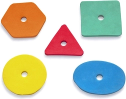 Łuk ze specjalnymi otworami i 5 kolorowymi piankowymi kształtami uczy dzieci rozpoznawania kolorów i kształtów, a także poprawia motorykę małą i koordynację.