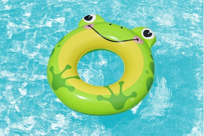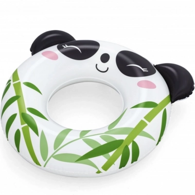 Czarno-białe koło z nadrukiem bambusa i uszkami 3D motywuje dzieci do ruchu w wodzie i umila pierwsze próby pływackie.