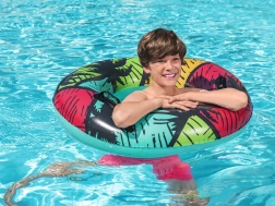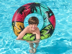 Dmuchane koło pływackie Bestway jest lekkie, poręczne i gotowe na beztroskie wodne przygody. Dzięki dwóm solidnym uchwytom łatwo na nie wsiąść i z niego zejść, a kolorowy tropikalny motyw nada Twojemu latu prawdziwie wakacyjny charakter.
