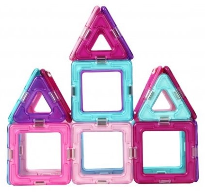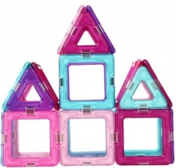 Pastelowa edycja popularnej układanki oferuje 18 kwadratów i 12 trójkątów w półprzezroczystych kolorach (różowy, fioletowy, turkusowy, niebieski). Elementy łączą się niezawodnymi magnesami w krawędziach, dzięki czemu dzieci z łatwością stworzą gwiazdy, domeczki, serca i wieżyczki. Zestaw idealny do pierwszych prób konstrukcyjnych i rozwijania wyobraźni przestrzennej.
