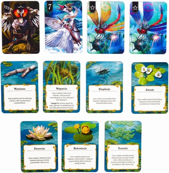 Ta polska edycja znanej gry „Schotten Totten 2” zachwyca pięknymi ilustracjami Piotra Sokołowskiego i zapewnia głębokie taktyczne doznania. Twórz formacje z pomocą zwierząt zamieszkujących polskie rzeki, takich jak czaple, sumy czy salamandry, i przechytrz ofensywne strategie przeciwnika.
