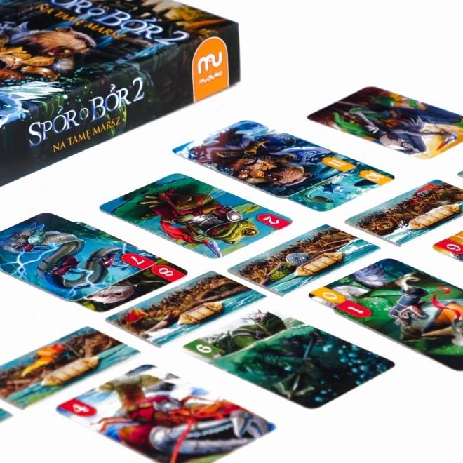 Spór o Bór 2: Naprzód na tamę to emocjonująca gra karciana dla dwóch graczy, w której liczą się strategiczne decyzje i zdrowa rywalizacja. Jeden gracz próbuje uszkodzić tamy, podczas gdy drugi musi odeprzeć atak. Gra oferuje trzy warianty: standardowy, „rewanż” z zamianą ról oraz wariant z kartami taktycznymi dla doświadczonych graczy.