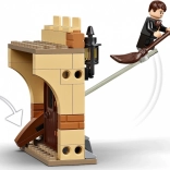 Funkcja lewitującej miotły pozwala dzieciom odtworzyć słynną scenę lekcji latania z filmu Harry Potter i Kamień Filozoficzny oraz wymyślać własne powietrzne przygody. Dzięki trzem długim przezroczystym dźwigniom mali budowniczy mogą podnosić minifigurki pani Hooch, Dracona Malfoya i Neville'a Longbottoma (z jego rzadką pamiątką) na miotle. Model można rozdzielić na pięć oddzielnych modułów, w tym pomieszczenie z Pucharem Quidditcha i magazyn z magicznym ekwipunkiem treningowym. Zestaw zawiera również inne niespodzianki: unikalną minifigurkę profesora Quirrella na złotej rocznicy i dwie losowe karty czarodziejów. Można go dodatkowo rozbudować i stworzyć kompletny model zamku Hogwartu.