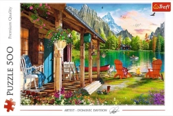 Ciesz się spokojnymi chwilami z pięknym motywem górskiego domku i jeziora. Puzzle z 500 elementami oferują idealne połączenie relaksu i wyzwania, a dzięki precyzyjnemu wykonaniu każdy element pasuje dokładnie na swoje miejsce.