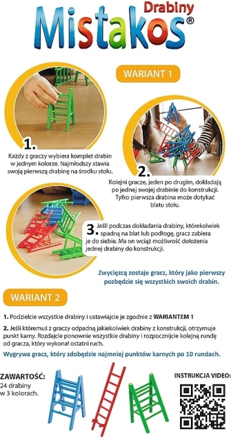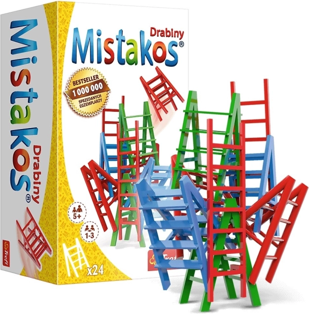 Popularna gra zręcznościowa Mistakos powraca w oryginalnej wersji z drabinkami. Celem jest sprytne dokładanie własnych drabinek do powstającej konstrukcji tak, aby nie runęła – proste zasady, szybkie rundy i mnóstwo śmiechu przy jednym stole.