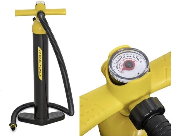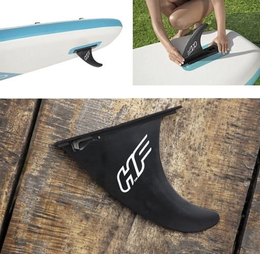 W opakowaniu znajdziesz deskę, regulowane wiosło (możliwość przerobienia na dwustronne), ręczną pompkę z manometrem, plecak, spiralny leash, środkowy fin, osłonę okienka oraz zestaw naprawczy.