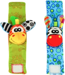 Zestaw zawiera 2 sztuki – w kolorze niebieskim i zielonym – do różnorodnej zabawy w domu i w podróży. Wykonane z bezpiecznego poliestru i spełniają certyfikację CE. Idealne na wczesny etap, gdy dziecko odkrywa swoje rączki i uczy się ich celowego używania.