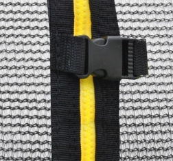 Montaż jest szybki i prosty: siatkę wystarczy przymocować do 8 słupków, a dolną część zabezpieczyć sznurkiem. Wejście wyposażono w zamek błyskawiczny i pasy z klamrami dla większego bezpieczeństwa podczas skakania. Dzięki uniwersalnym wymiarom pasuje do trampolin różnych producentów.