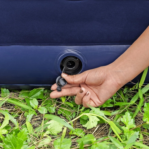 Dzięki zaworowi bezpieczeństwa pompowanie, regulacja ciśnienia i spuszczanie powietrza trwają chwilę. Materac nadaje się do użytku wewnątrz i na zewnątrz, świetnie sprawdzi się dla gości, na działkę czy pod namiot. W zestawie znajduje się wodoodporna łatka naprawcza do szybkiej naprawy drobnych uszkodzeń.