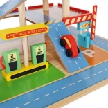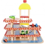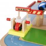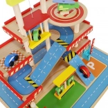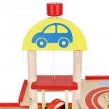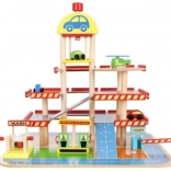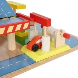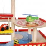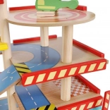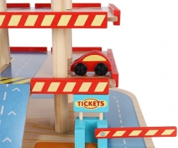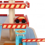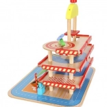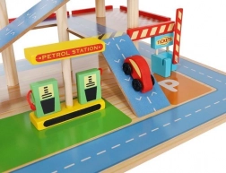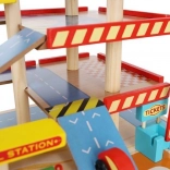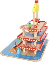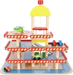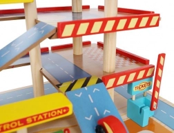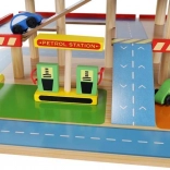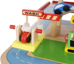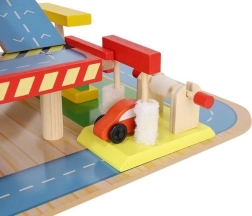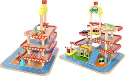 Odkryj solidny drewniany parking z garażem, który oferuje trzy poziomy zabawy połączone rampami, działającą windę oraz górne lądowisko dla helikoptera. Dzieci pokochają realistyczne elementy, takie jak myjnia samochodowa, stacja paliw i sprzedaż biletów, dzięki którym powstają autentyczne scenariusze drogowe.