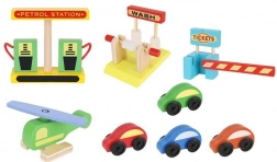 - 4 autka, helikopter, myjnia, stacja paliw, kasa, winda, elementy dróg, zestaw montażowy