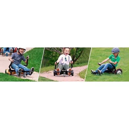 • Łatwa przemiana hoverboardu w gokart – więcej zabawy i stabilności w pozycji siedzącej.