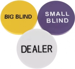 Na wyposażeniu znajdziesz dwie talie kart, żetony DEALER, SMALL BLIND i BIG BLIND – wszystko do płynnej gry domowej i formatu turniejowego.