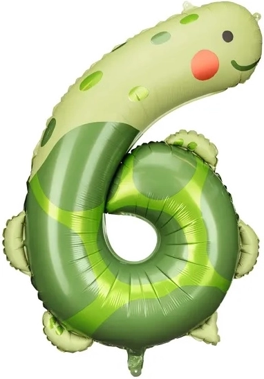 Balon foliowy cyfra 6 z zabawnym motywem żółwia to świetny wybór na urodziny i do fotokącików. Dzięki wysokiej jakości folii długo utrzymuje kształt i kolory, nadaje się do napełniania powietrzem oraz helem.