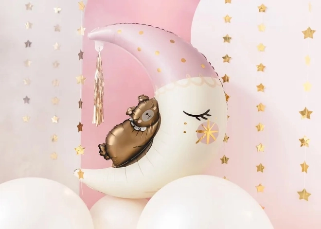 Szukasz urokliwej dekoracji na przyjęcie dla dzieci, powitanie maluszka czy urodziny? Ten balon foliowy z misiem na księżycu to idealny wybór. Dzięki możliwości napełnienia helem uzyskasz piękny efekt unoszenia, natomiast po napełnieniu powietrzem świetnie sprawdzi się jako element dekoracji lub do kącika foto.