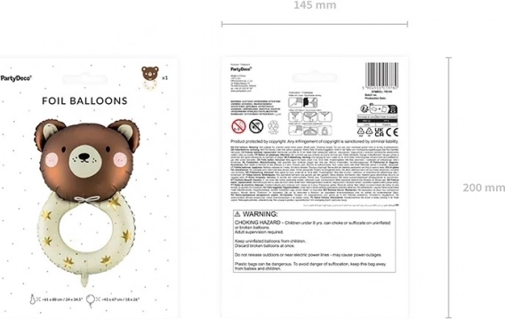 Dodaj swojej imprezie uroku dzięki foliowemu balonowi w kształcie misia. Dzięki możliwości napełnienia helem balon pięknie unosi się i staje się wyrazistą dekoracją na baby shower, chrzest oraz dzieciowe urodziny.