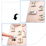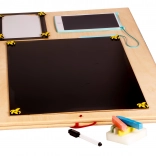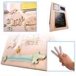 Dzięki unikalnemu dwustronnemu designowi dzieci mogą korzystać zarówno z manipulacyjnej strony, jak i tej do pisania i rysowania.