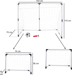 Ta bramka piłkarska 2w1 jest idealna dla małych piłkarzy, którzy chcą sprawdzić swoje umiejętności w grze oraz podczas treningu strzałów na bramkę. Unikalna konstrukcja pozwala na złożenie jednej dużej bramki o wymiarach 143x110x70 cm lub rozłożenie jej na dwie mniejsze bramki o wymiarach 74x55x35 cm.