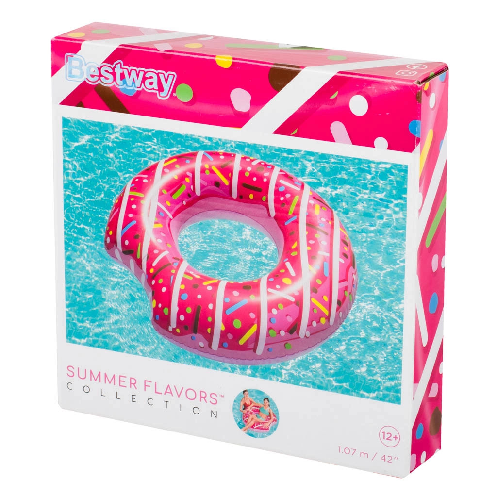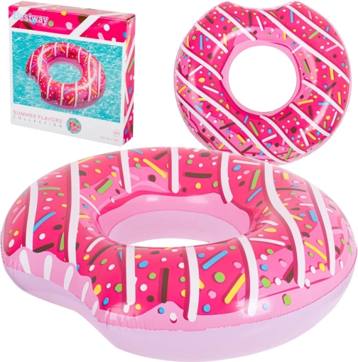Zabawny nadmuchiwany krąg w kształcie donuta od BESTWAY przynosi lato pełne relaksu i zabawy. Dzięki średnicy 107 cm świetnie podtrzymuje zarówno podczas leniwego dryfowania na wodzie, jak i przy pierwszych pewniejszych próbach pływania. Stylowy różowy design z posypką jest nie do przeoczenia i wygląda świetnie na zdjęciach.