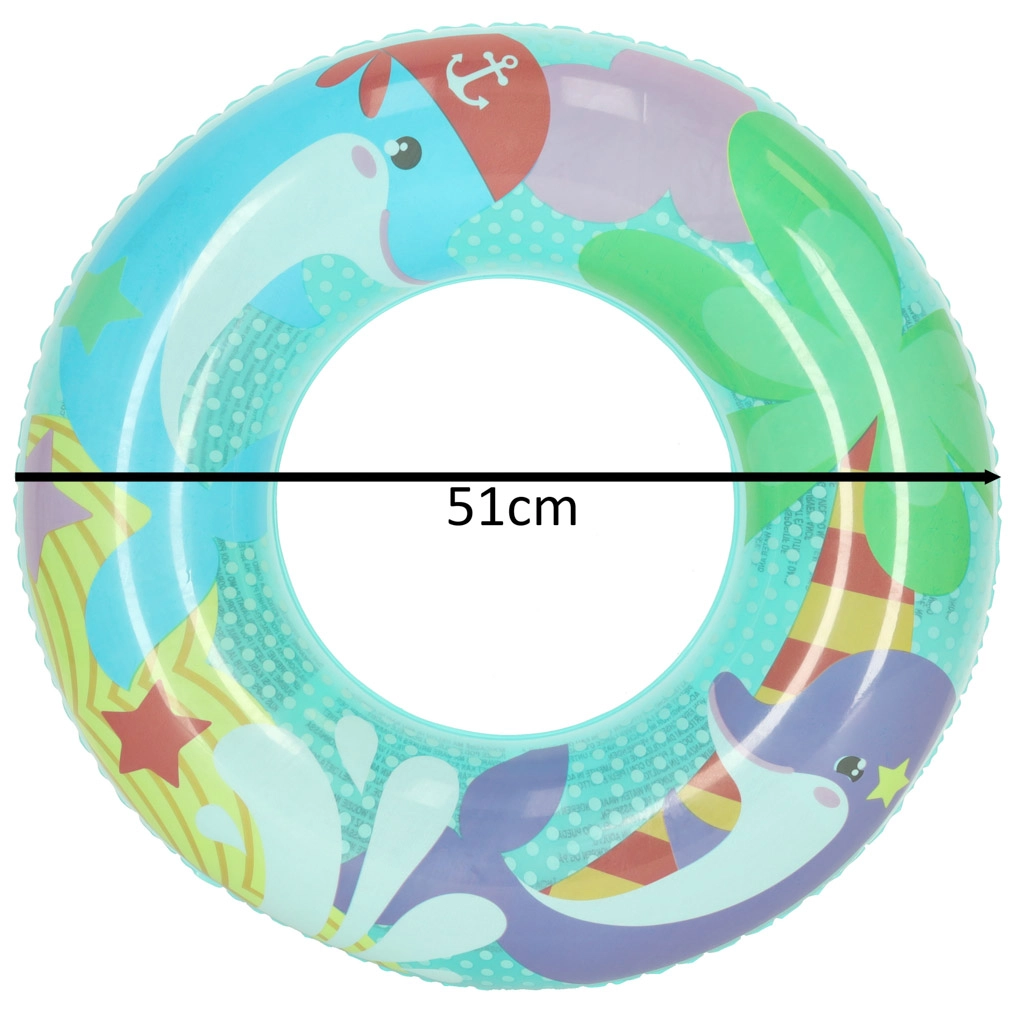 Kolorowe wykonanie z delfinem zachęca dzieci do bezpiecznej zabawy w wodzie i wspiera ich pewność siebie podczas pływania.