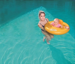 Nadmuchiwane dziecięce siedzisko do wody to doskonała pomoc dla rodziców, którzy chcą oswajać swoje dzieci z wodą od najmłodszych lat. Nadaje się do użycia nie tylko w basenach, ale także nad morzem czy jeziorem. Okrągły kształt zapewnia dobrą wyporność i stabilność, co pomaga dziecku utrzymać równowagę i bezpiecznie unosić się na powierzchni. Dla większego komfortu i bezpieczeństwa siedzisko ma wszyte „majteczki”, które podtrzymują dziecko i zapobiegają przewróceniu. Wesoła, żywa kolorystyka z motywem kraba przyciąga uwagę dziecka i zachęca do wodnych zabaw.