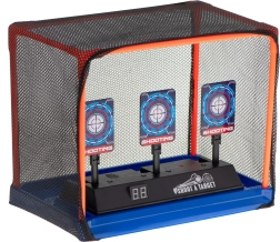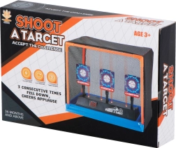Elektroniczny cel do strzelania to świetna zabawka dla dzieci i dorosłych, którzy chcą trenować celność i koordynację ręka-oko. Po trafieniu cele się składają, po strąceniu wszystkich trzech automatycznie się podnoszą, a na wyświetlaczu LED doliczany jest punkt. Odpowiedni do piankowych strzałek i kulek.