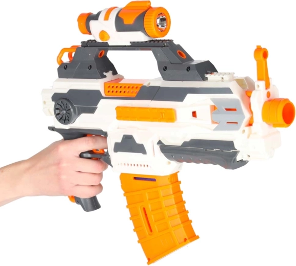 - Blaster z szynami taktycznymi, latarka, odłączany tłumik lufy, 2 magazynki (6 i 10 strzałek), 30 piankowych strzałek, kolba z uchwytem na magazynek, instrukcja z ilustracjami