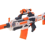 W komplecie 30 piankowych strzałek, 2 magazynki (6 i 10 strzałów), funkcjonalna latarka, tłumik/lufa oraz kolba z uchwytem na zapasowy magazynek.