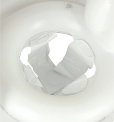 Nadmuchiwane koło jest wyposażone w wygodne siedzenie i otwory na nogi, co zapewnia stabilność i bezpieczeństwo.