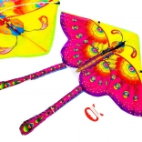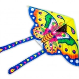 Kolorowy latawiec w kształcie motyla o szerokości 90 cm z wytrzymałego nylonu, łatwy do puszczania nawet przy słabym wietrze. W zestawie znajduje się mocna nylonowa linka z uchwytem, lekka konstrukcja oraz przyciągający wzrok design zapewniający zabawę dla całej rodziny.