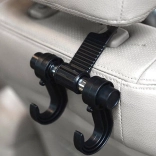 Uniwersalny wieszak samochodowy jest doskonałym pomocnikiem do utrzymania porządku w samochodzie. Umożliwia bezpieczne zawieszanie zakupów i innych przedmiotów dzięki dwom haczykom, których kąt można dostosować w zależności od potrzeb.