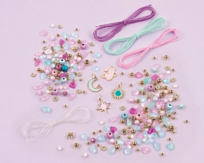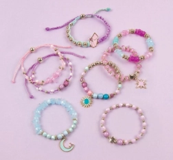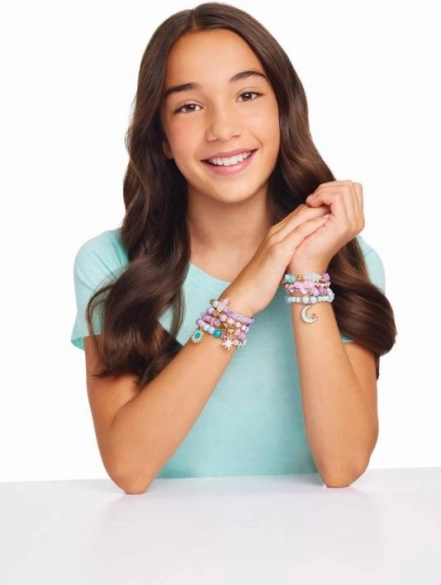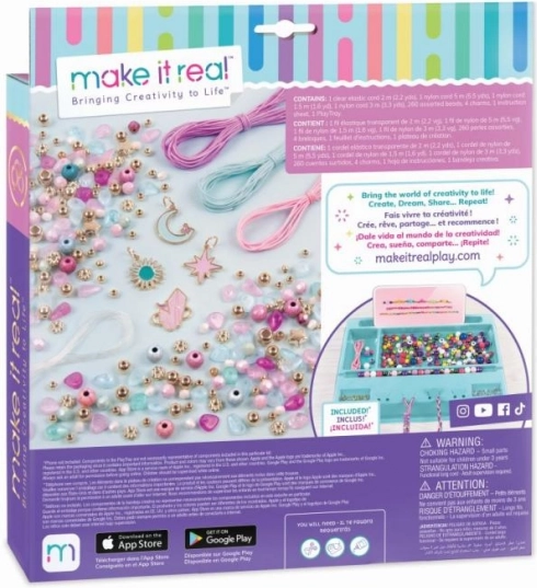 Stwórz magiczne bransoletki inspirowane niebem i gwiazdami. Zestaw Make It Real Celestial Stones zawiera bogaty wybór koralików, perełek i zawieszek, dzięki którym dzieci łatwo wykonają bransoletki według własnej fantazji. Idealny do wspólnego tworzenia z przyjaciółmi lub jako kreatywny prezent.