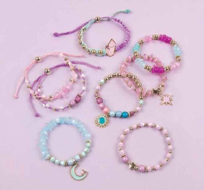 Odkryj kreatywny zestaw Make It Real Celestial Stones do wykonania aż ośmiu unikalnych bransoletek. W opakowaniu znajdziesz wszystko, czego potrzebujesz – od koralików i perełek po zawieszki i sznureczki. Doskonały wybór dla rozwoju dziecięcej wyobraźni, motoryki małej i autoekspresji. Zestaw jest bezpieczny, testowany według najwyższych standardów i zapewnia mnóstwo zabawy podczas tworzenia.