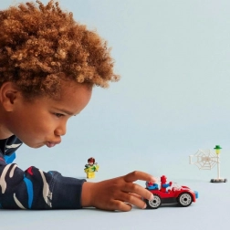 Kradzież diamentów rozpoczyna pełną akcji przygodę i oferuje dzieciom nieskończone możliwości. Zestaw zawiera dwie minifigurki - Spider-Mana i Doc Ocka - oraz samochód z dwoma świetlistymi sieciami. Specjalna startowa kostka w formie podwozia motywuje dzieci do samodzielnego budowania samochodu Spider-Mana. Prosty przewodnik jest dostępny w formie ilustrowanej broszury, a aplikacja LEGO Builder oferuje intuicyjne narzędzia do powiększania i obracania, które pomagają dzieciom wizualizować model, który budują.