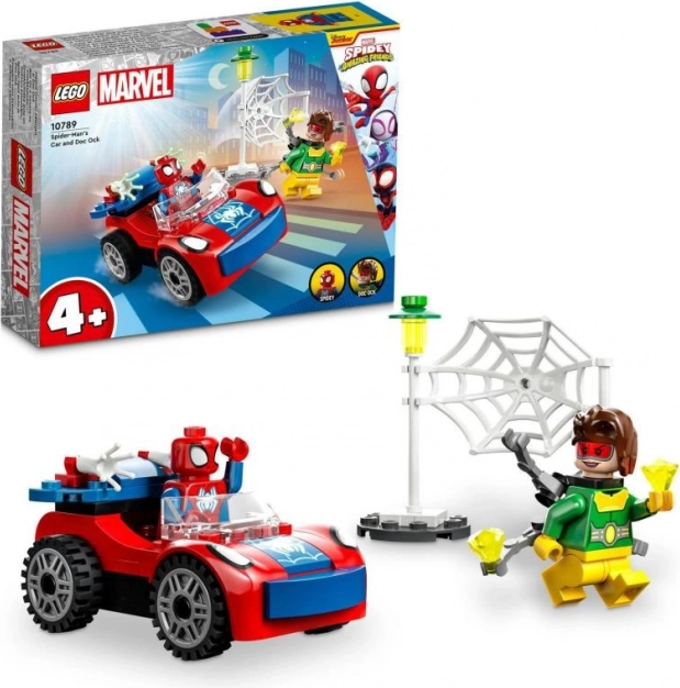 - Kultowe postacie - w opakowaniu znajdziesz minifigurki Spider-Mana i Doc Ocka, oraz samochód ze świetlistymi sieciami i startową kostką w formie podwozia, wspierającą początkujących budowniczych.
