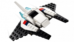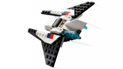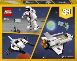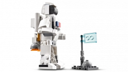 Ten zestaw LEGO Creator 3 w 1 zawiera trzy różne modele. Możesz zbudować kosmiczny prom, przebudować go na ruchomą figurkę astronauty z plecakiem odrzutowym i flagą do wbicia w powierzchnię planety albo stworzyć imponujący model statku kosmicznego.