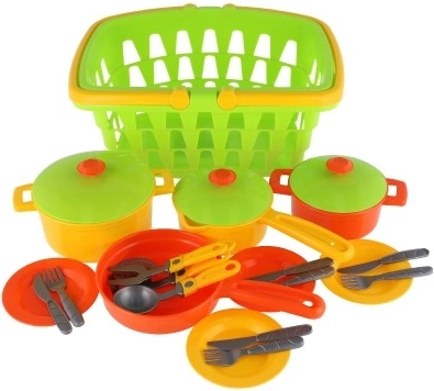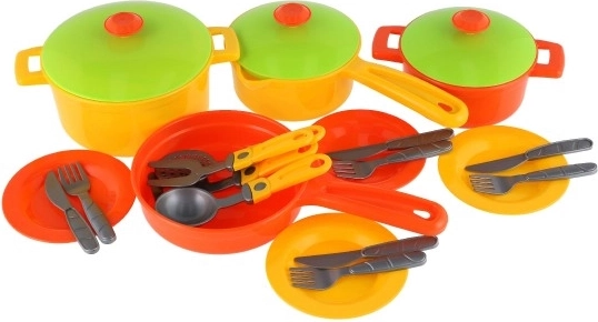 Ten zestaw kuchenny to doskonałe uzupełnienie dla każdego dziecka kochającego gotowanie. Zestaw zawiera 28 elementów, takich jak czajnik, patelnia, dwa garnki z pokrywkami, talerzyki, kubeczki i łyżeczki. Wytrzymały plastik zapewnia długą żywotność, a kolorowe wykonanie przyciąga uwagę dzieci, wspiera kreatywną zabawę i rozwój umiejętności motorycznych.