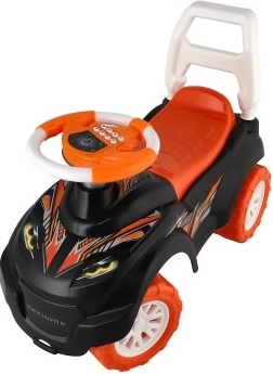 Jeździk wyposażono w kierownicę z ośmioma różnymi efektami dźwiękowymi, takimi jak dźwięk uruchamiania silnika, hamowania, syreny oraz wesołe melodie, co zwiększa atrakcyjność zabawy. Do działania efektów dźwiękowych potrzebne są dwie baterie AA (brak w zestawie).