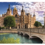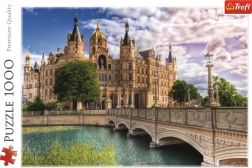 Puzzle z 1000 elementami przedstawiające zamek na wyspie, idealne dla każdego miłośnika układanek. Po ułożeniu powstaje obraz o wymiarach 683x480 mm.
