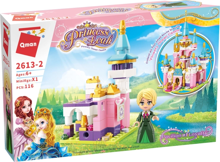 Zbieraj, łącz i podnoś budowę oraz zabawę na wyższy poziom! Mini zestaw magicznego zakątka z serii Flowery Ocean Castle, którego skompletowanie umożliwia zbudowanie dużego, spójnego modelu bajkowego zamku. Wysoce uniwersalne klocki Qman z kolorowych plastikowych elementów można łączyć z podobnymi zestawami wielu innych renomowanych producentów. Wykonane z wysokiej jakości, bezpiecznego i wytrzymałego plastiku ABS. Pakowane w kolorowe, drukowane pudełko kartonowe. Główne cechy: 116 elementów i 1 figurka, po skompletowaniu serii można zbudować duży model, kompatybilne z zestawami innych producentów